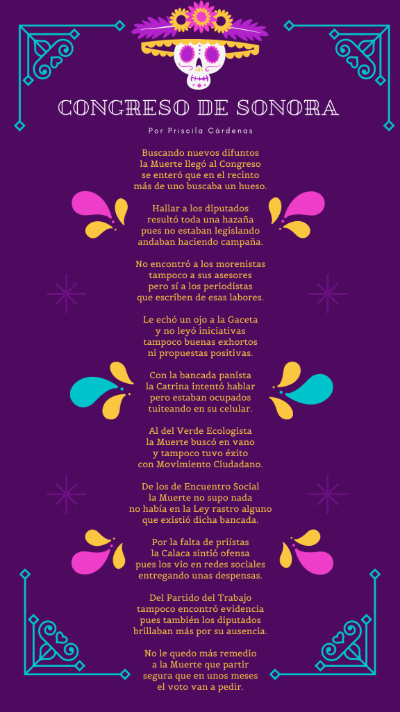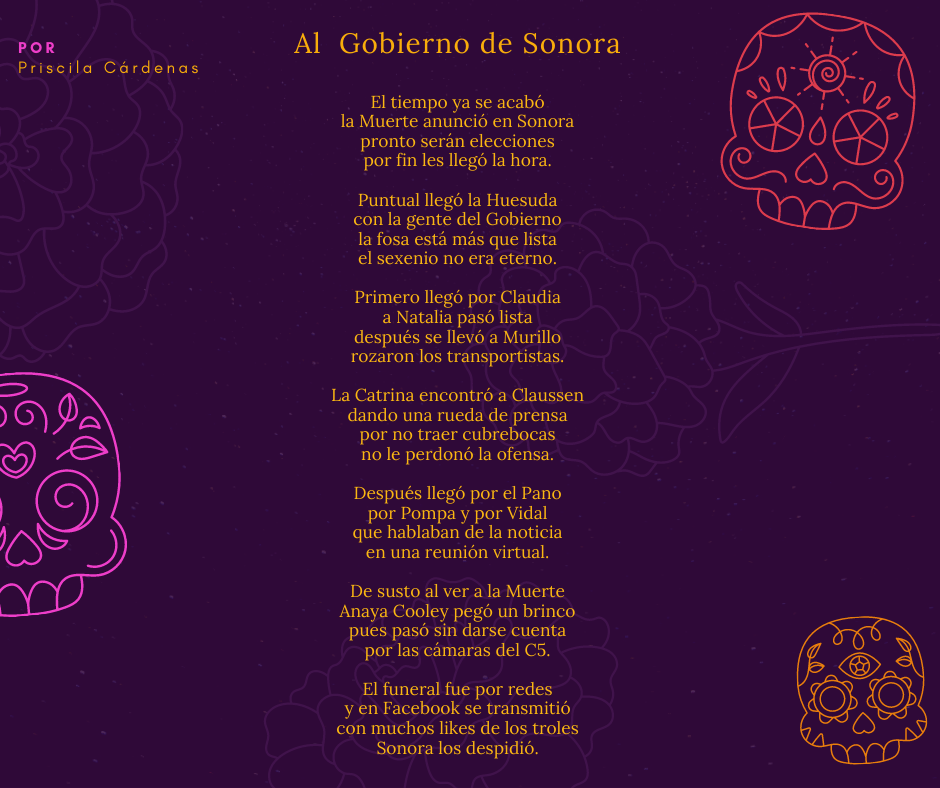 Siempre ha sido una de las celebraciones mexicanas que más me gustan y por eso no perdí la oportunidad de escribir unas Calaveritas a personajes de la política sonorense en el contexto de que ya se acaba el 2020: