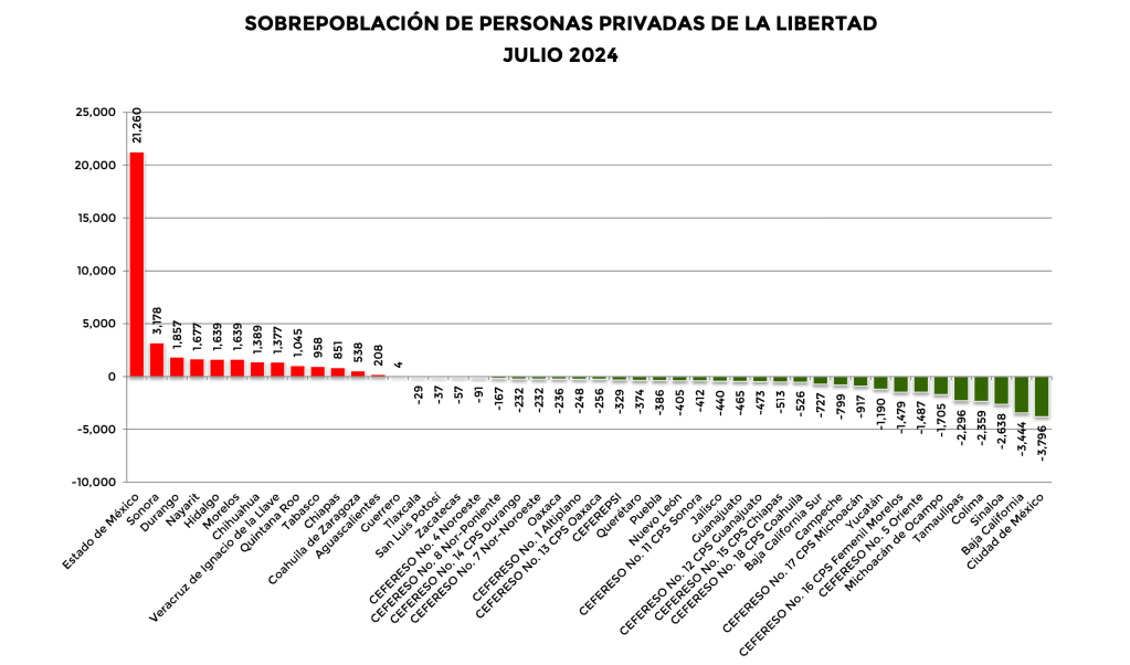 Otro dato que abona al tema penitenciario es que Sonora se encuentra entre los 5 estados con más personas privadas de la libertad, siendo el Estado de México, la Ciudad de México y Jalisco las entidades que ocupan los primeros lugares con más gente purgando condena por cometer delitos.